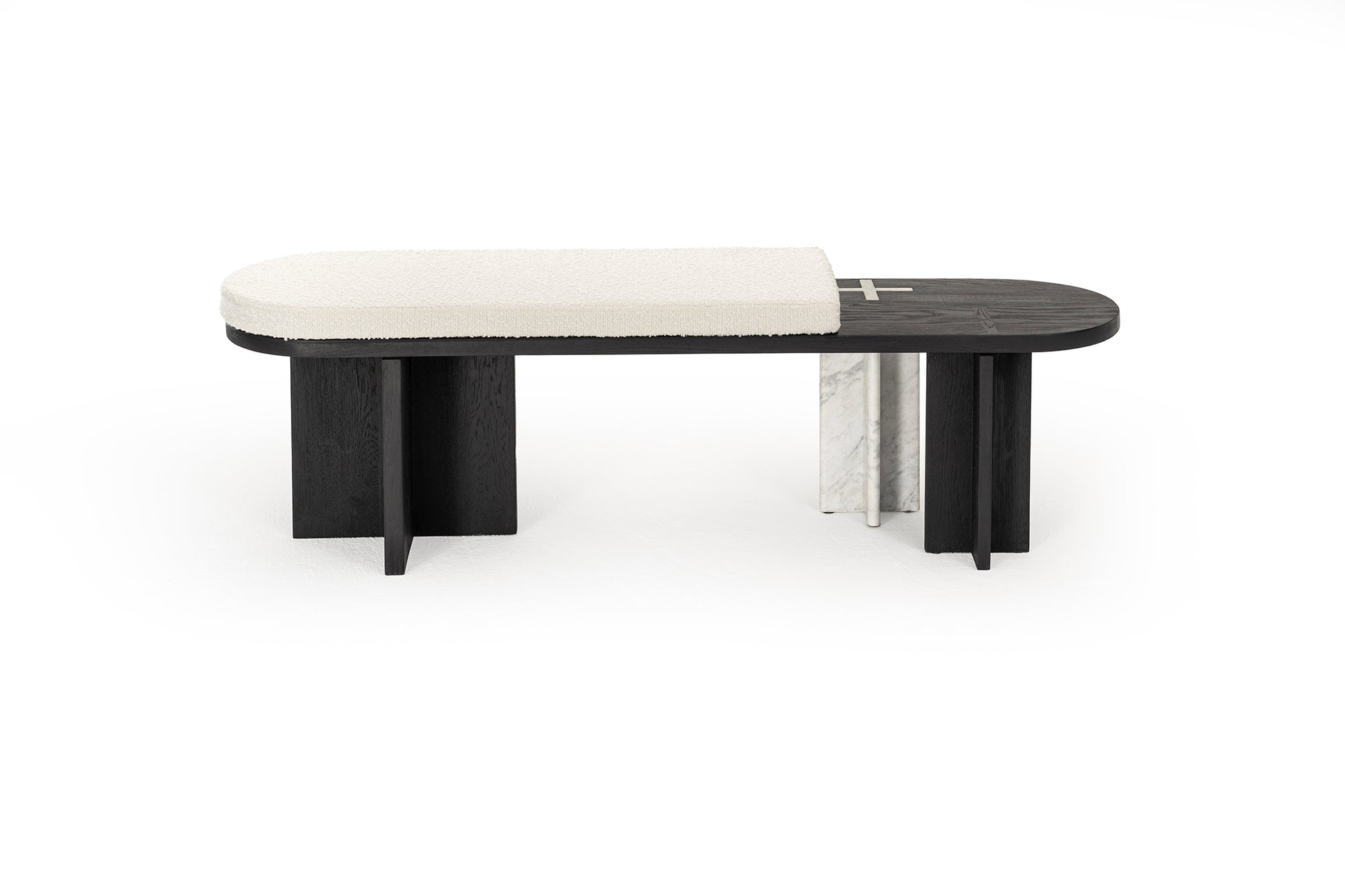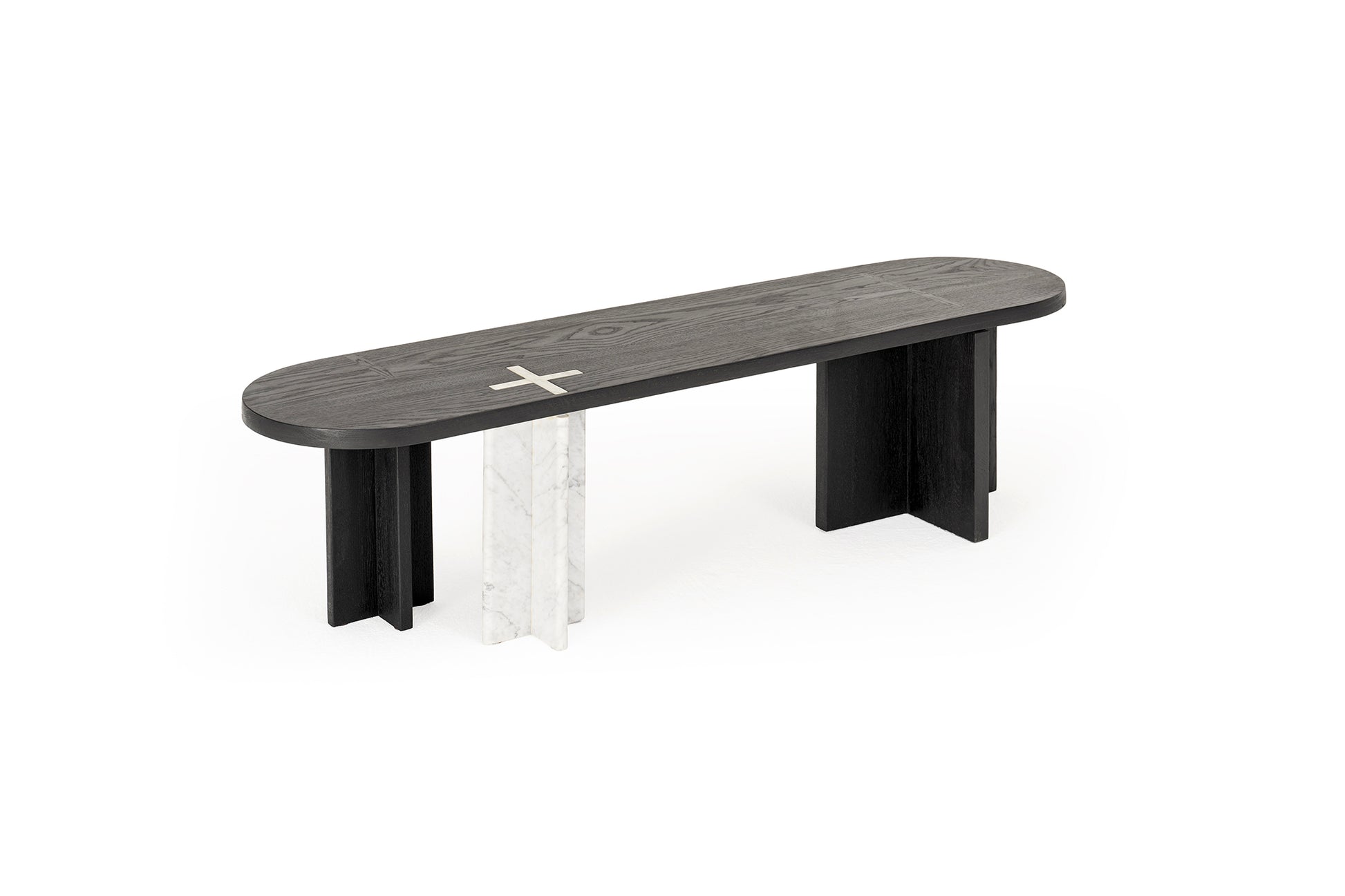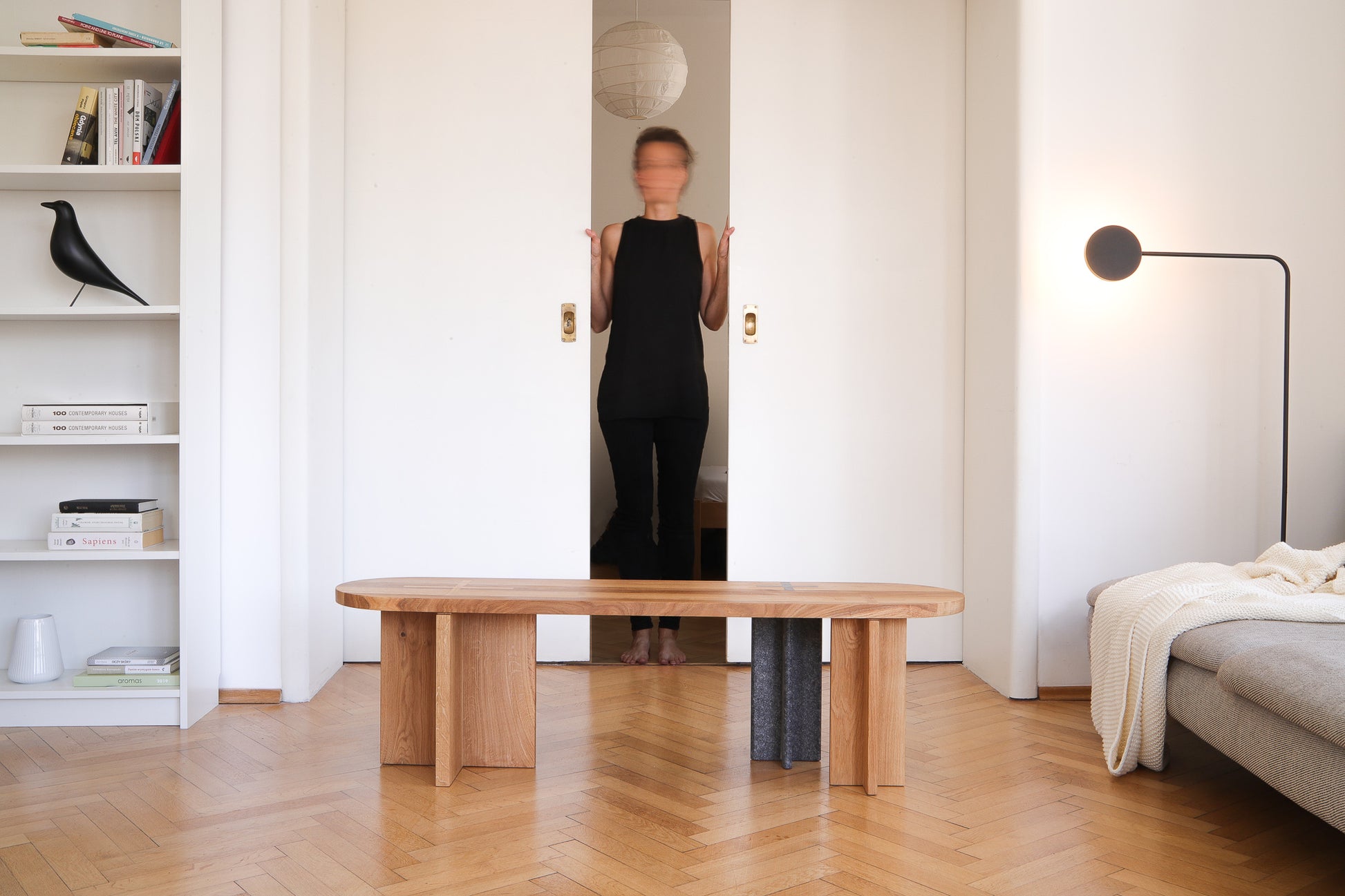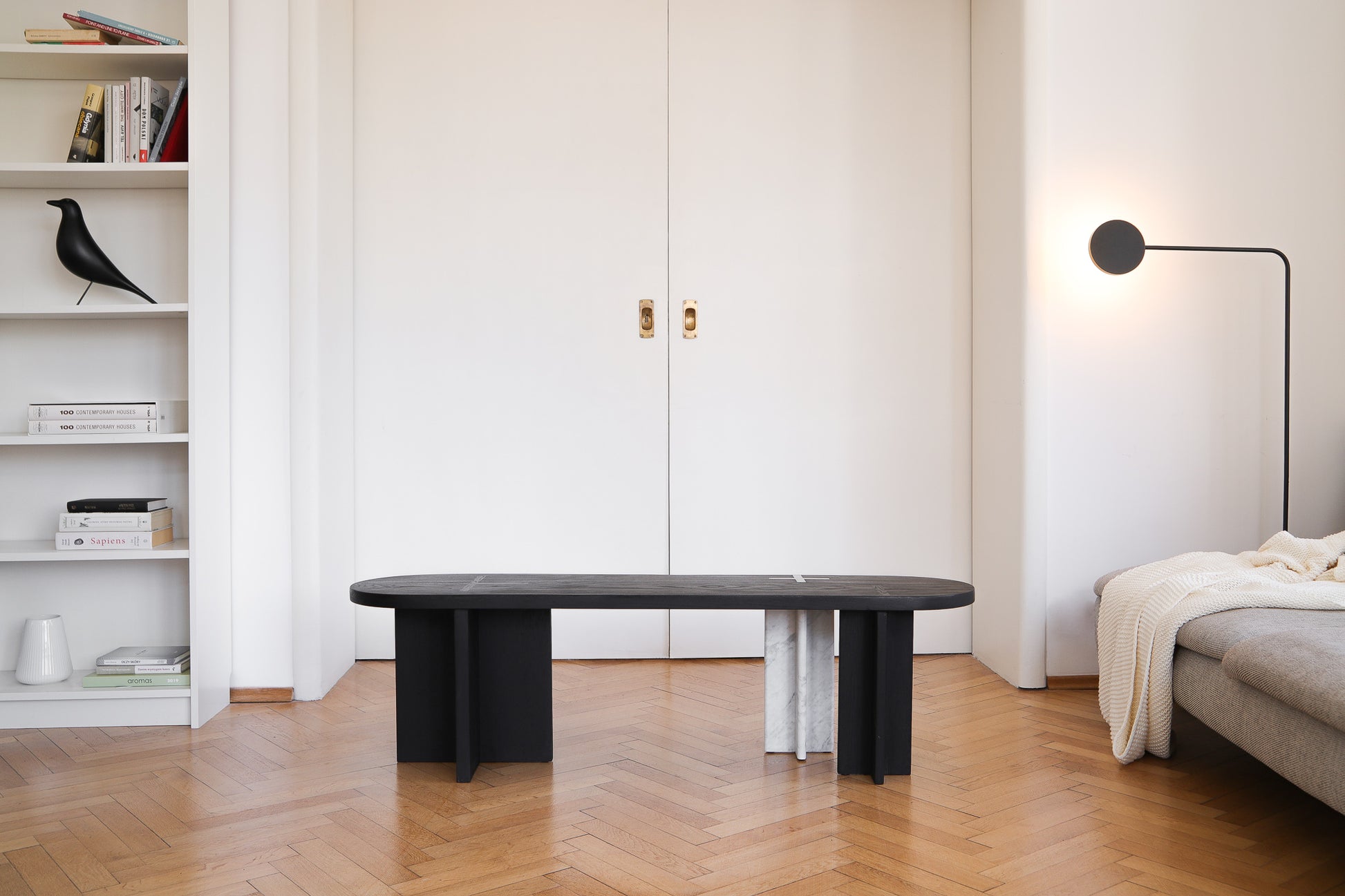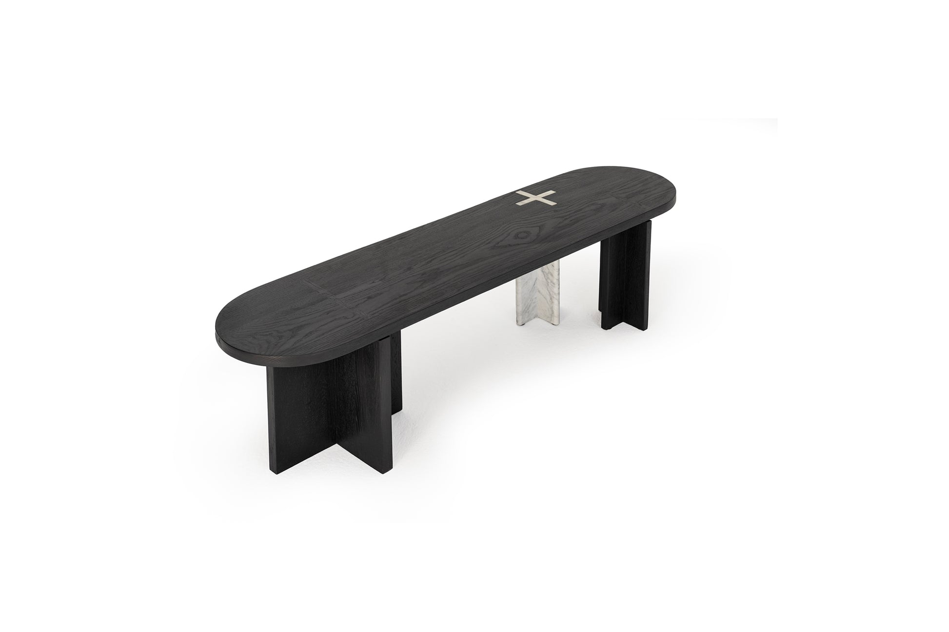 ater.bench.stone to ręcznie wykonana ławka z drewna dębowego, uzupełniona elementami kamienia naturalnego.